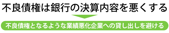 不良債権が多いと引当金として経費にする額が大きくなり、自行の経営を圧迫します。