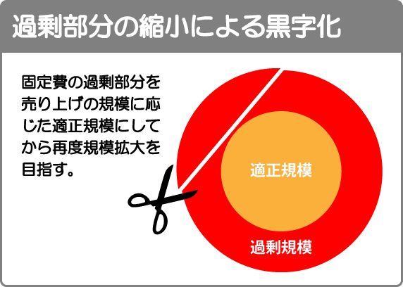 今の会社の規模にあった固定費にしてから仕切り直すことが必要です。 |